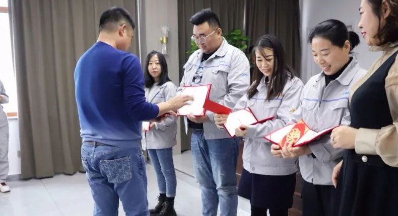 會議開始,王總代表公司感謝各位志愿者們,對各位在“防疫”阻擊戰(zhàn)中的辛勤付出表達(dá)了崇高的敬意和誠摯的感謝。隨后,由公司領(lǐng)導(dǎo)為大家頒發(fā)“新冠肺炎疫情防控志愿服務(wù)證書”以及現(xiàn)金紅包獎勵,以此來感謝各位志愿者們?yōu)榇蜈A疫情防控攻堅戰(zhàn)作出的積極貢獻(xiàn),同時也是在鼓勵更多員工,投身到志愿服務(wù)中,在黨和國家需要我們的時候,能夠積極發(fā)揚(yáng)志愿精神,共同守護(hù)我們的祖國。
