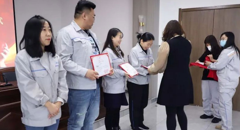 為表彰在疫情防控工作中勇于奉獻(xiàn)、沖鋒在前的各位志愿者員工們,弘揚(yáng)“奉獻(xiàn)、友愛、互助、進(jìn)步”的志愿者精神。1月12日,由中共天津市靜海區(qū)委靜海鎮(zhèn)工作委員會頒發(fā)、天津市瑞豐達(dá)金屬制品有限公司舉辦的,新冠肺炎疫情防控志愿者表彰大會在瑞豐達(dá)三樓會議室順利召開。公司董事長王總、總經(jīng)理張總、公司各部門負(fù)責(zé)人以及公司全體員工參加本次會議。